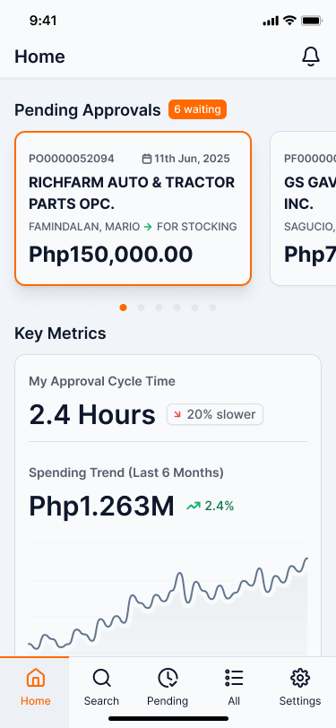 Manage purchase orders, approve requisitions, and track spending metrics securely from your device. The official internal tool for logistics management.